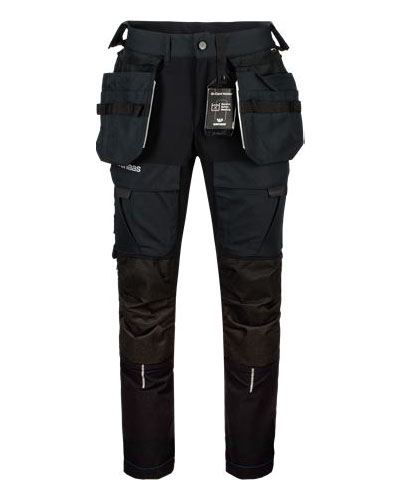 En allsidig stretchbukse for håndverkeren. Buksen er utviklet med et slitesterkt og fleksibelt materiale for den beste komforten. Med smarte lommeløsninger får arbeideren med seg det viktigste verktøyet. 4-veis stretch materiale der du trenger god bevegelighet – framme og bak. Lett bukse med formsydde ben. To framlommer og to baklommer. Lårlomme med mobiltelefonlomme. Cordura kneputelomme og innvendig i spikerlommer. Gummiert knapp i front for å unngå riper på glass og lakkerte flater. Lengen på bukseben kan legges ut 7 cm.
